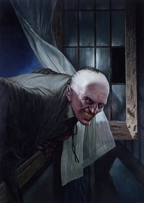Originally commissioned by Wiedenfeld & Nicholson but not used. Later used as a bookcover for Best New Horror 1990, edited by Stephen Jones and Ramsey Campbell and published by Robinson, and on Super-Monsters by Daniel Cohen, published by Archway. Also used on the CD cover Alive & Screaming by Krokus and a German Magazine.