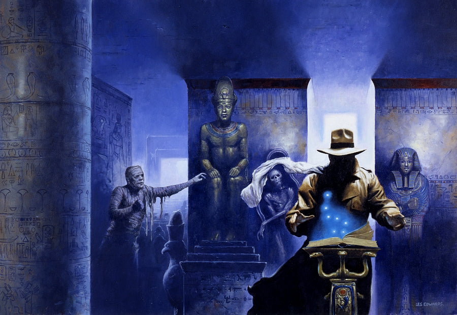 Bookcover for an anthology edited by Stephen Jones including stories by Clive Barker, Neil Gaiman & Basil Copper. Published by Fedogan & Bremer. The story on which this picture is based was written by the excellent Kim Newman. However, it turned into my own tip of the hat to Steve Ditko. Remember the Mysterious Stranger? Also used on the British Fantasy Society's Dark Horizons, Simulacrum magazine and a German book cover.