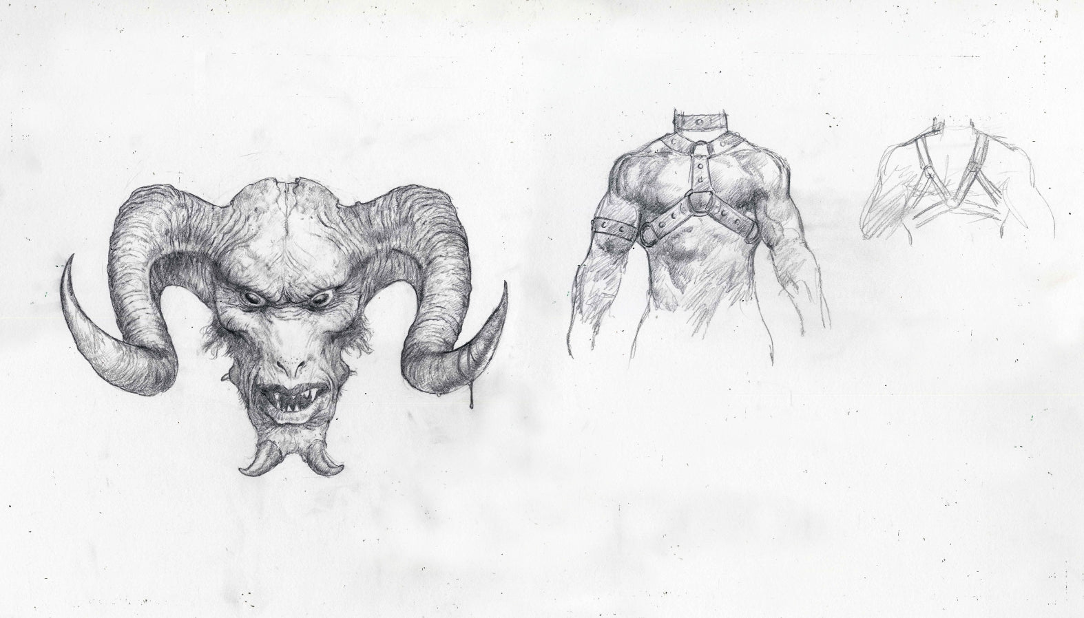 One of a couple of sketches I did for a proposed film by Paul Campion, called Dark Hollow. Sadly I don't think it was ever made. The client wanted a horned satyr like creature and I would have loved to see how it turned out on film.