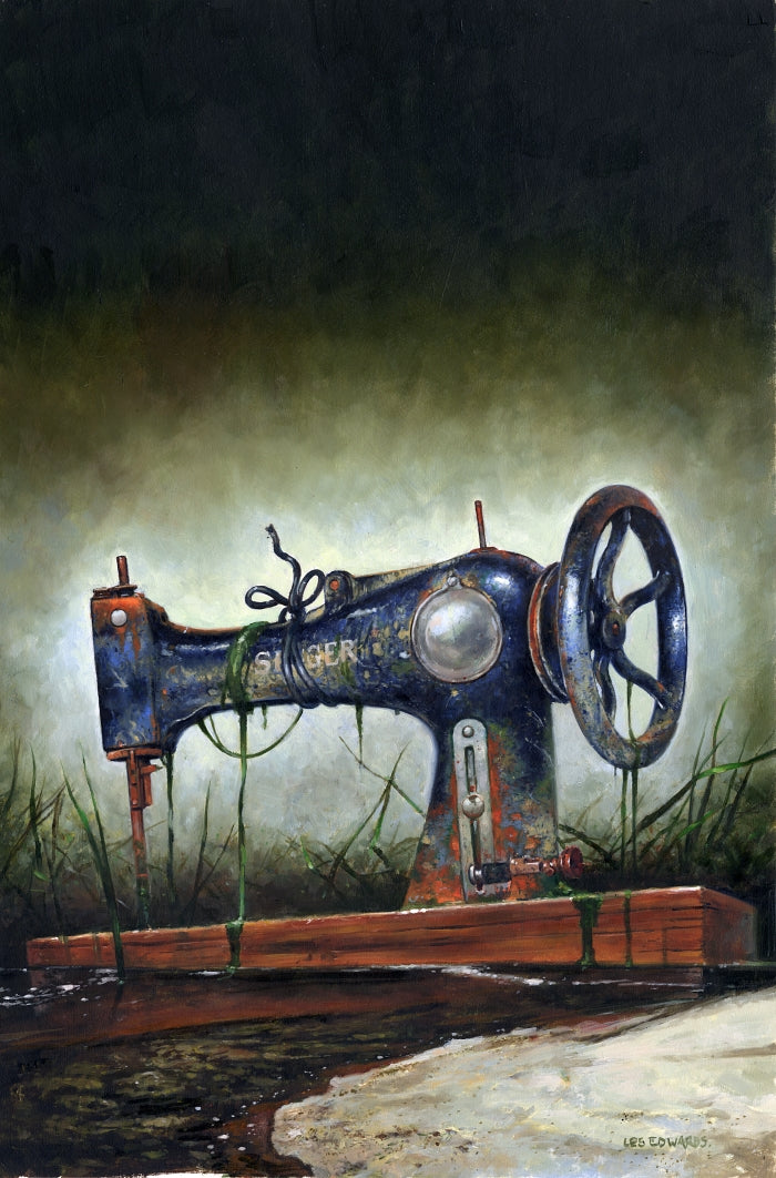 Cover painting for Edge of Dark Water by Joe R. Lansdale, published by PS Books. A sewing machine may seem like an odd image for the cover but it is quite central to the story and we wanted something that wasn't just another photo of a swamp.