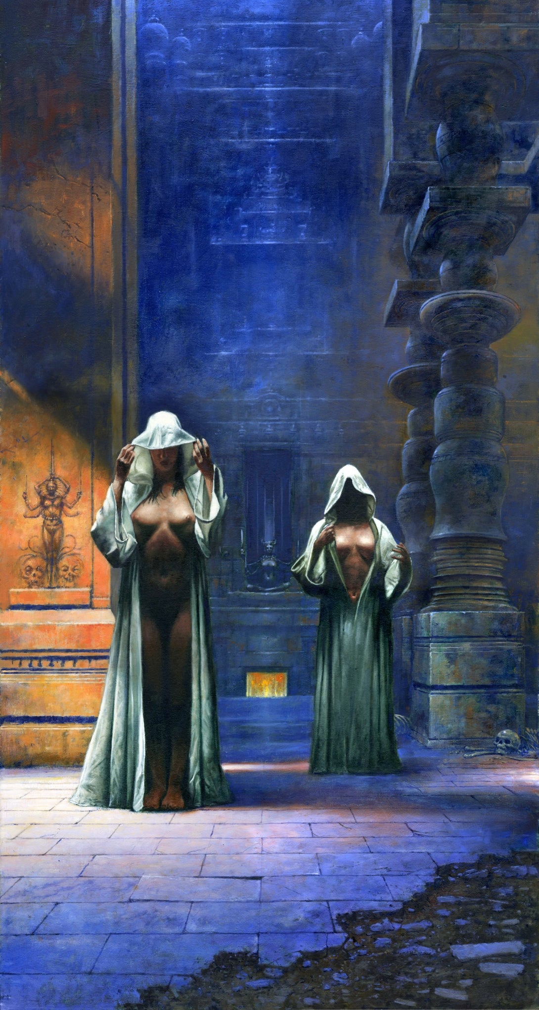 Loosely based on Clark Ashton Smith's short story this is a personal painting and the companion piece to The Bishop of Ximes. I think it's about finished. It took a long time largely because work kept getting in the way. I'm grateful to Marcus J Ranam for the use of some of his reference. Beautiful stuff well worth a look. https://www.deviantart.com/mjranum-stock/gallery