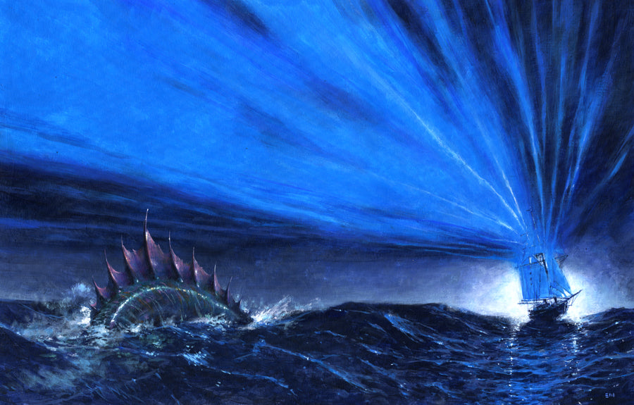 The book cover doesn't have the monster on the left hand side which is nothing to do with the story. I added it later as I felt that there was a rather large, empty area there. I was surprised at how much it changed the picture, giving it an improved sense of depth.