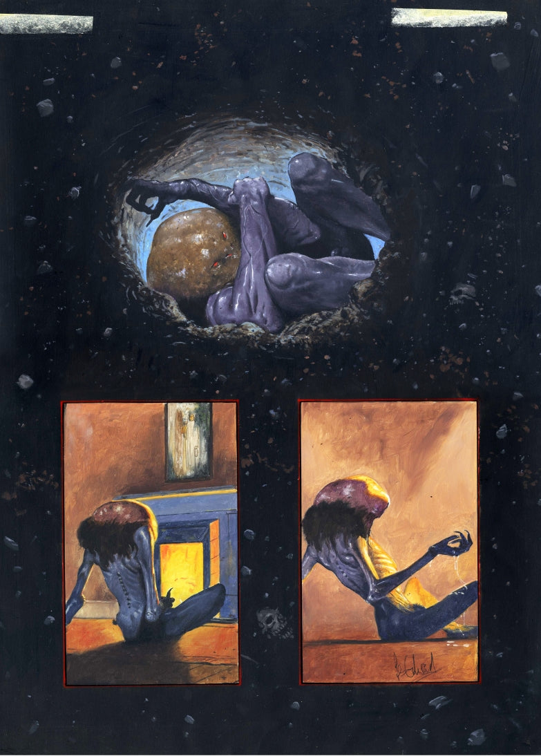 A page from the Graphic Novel based on a story by Clive Barker. It was published by Eclipse Books and adapted by Steve Niles. Some of that pesky tape left from the layout artist's work is at the top. Even after 30 years it doesn't want to come off.