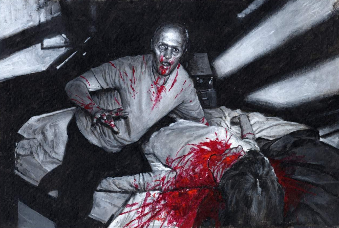One of the concept paintings for the movie Son of Darkness. The client specifically asked for the red blood in the otherwise black and white painting.