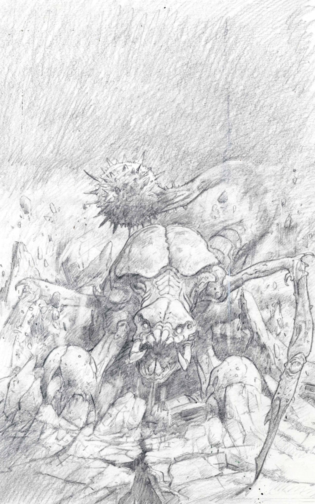 This is my second sketch for the cover of Robert McCammon's novel published by Subterranean Press. The publishers had decided to go for a "Monster on the Rampage" approach, which was probably appropriate but I prefer the more understated feel of my original drawing.