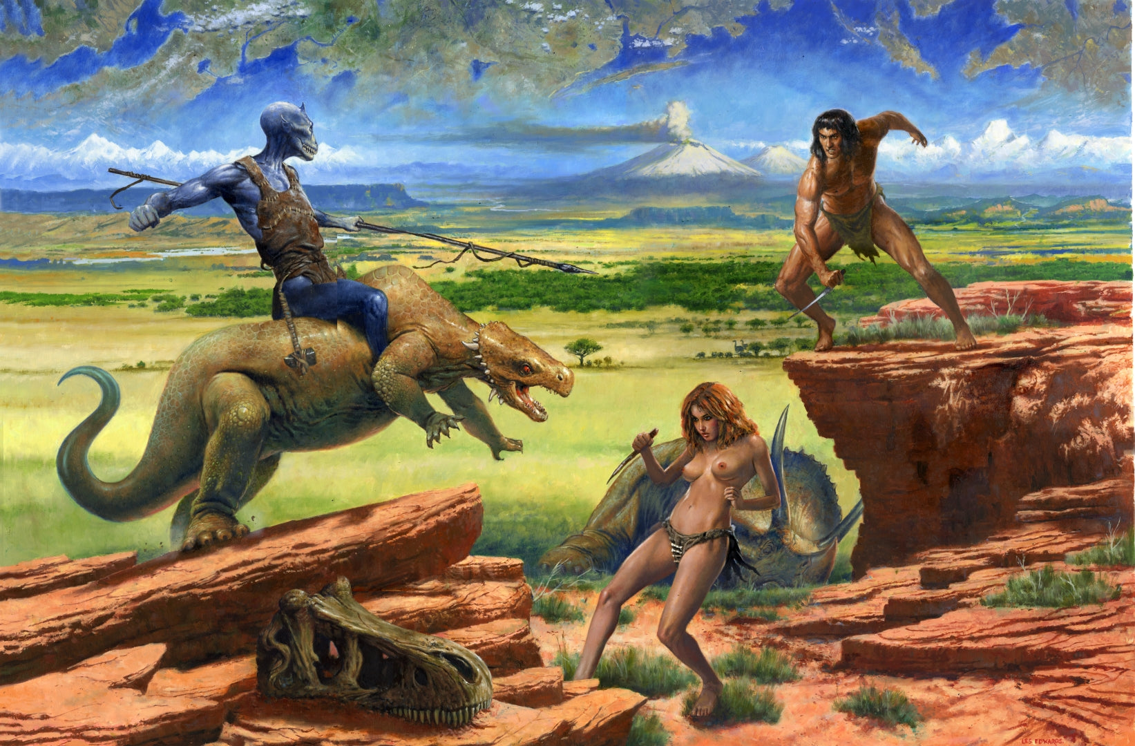 Private commission. The third painting in the series based on the stories of Edgar Rice Burroughs. There are a few departures from Burroughs' descriptions here, particularly regarding the Horrrib and his mount, but put it down to "artistic license". As the other two paintings were interior scenes I wanted this one to be a wide landscape, but a world where there is no proper horizon is tricky to visualise. I had a good time with it though.