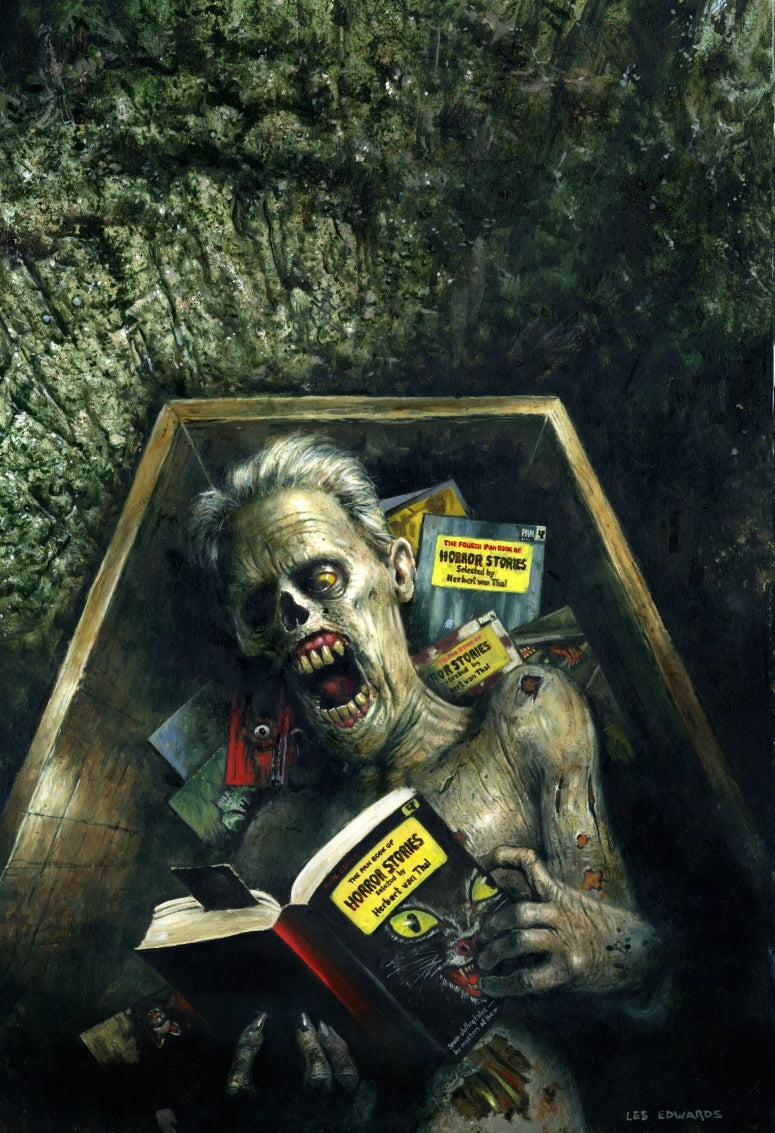 The cover painting for a proposed book recalling the great days of The Pan Book of Horror which was so influential. It was to be edited by Johnny Mains. At the time of writing it looks as though the book won't see the light of day. Oh well; that's publishing. In 2016 the artwork was used on Back From the Dead: The Legacy of the Pan Book of Horror Stories edited by Johnny Mains.