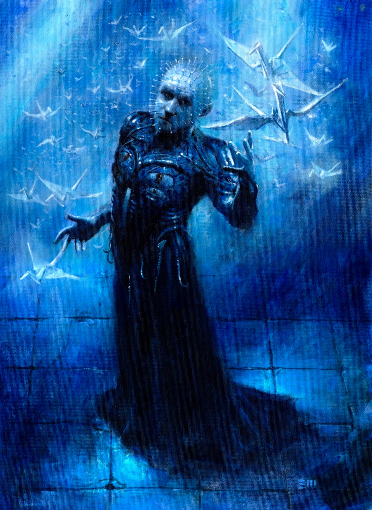 One of the illustrations for The Scarlet Gospels by Clive Barker, published by Earthling. Pinhead is one of the classic monsters and it was lovely to have a crack at him. You'll have to read the book to find out what's going on with the birds.