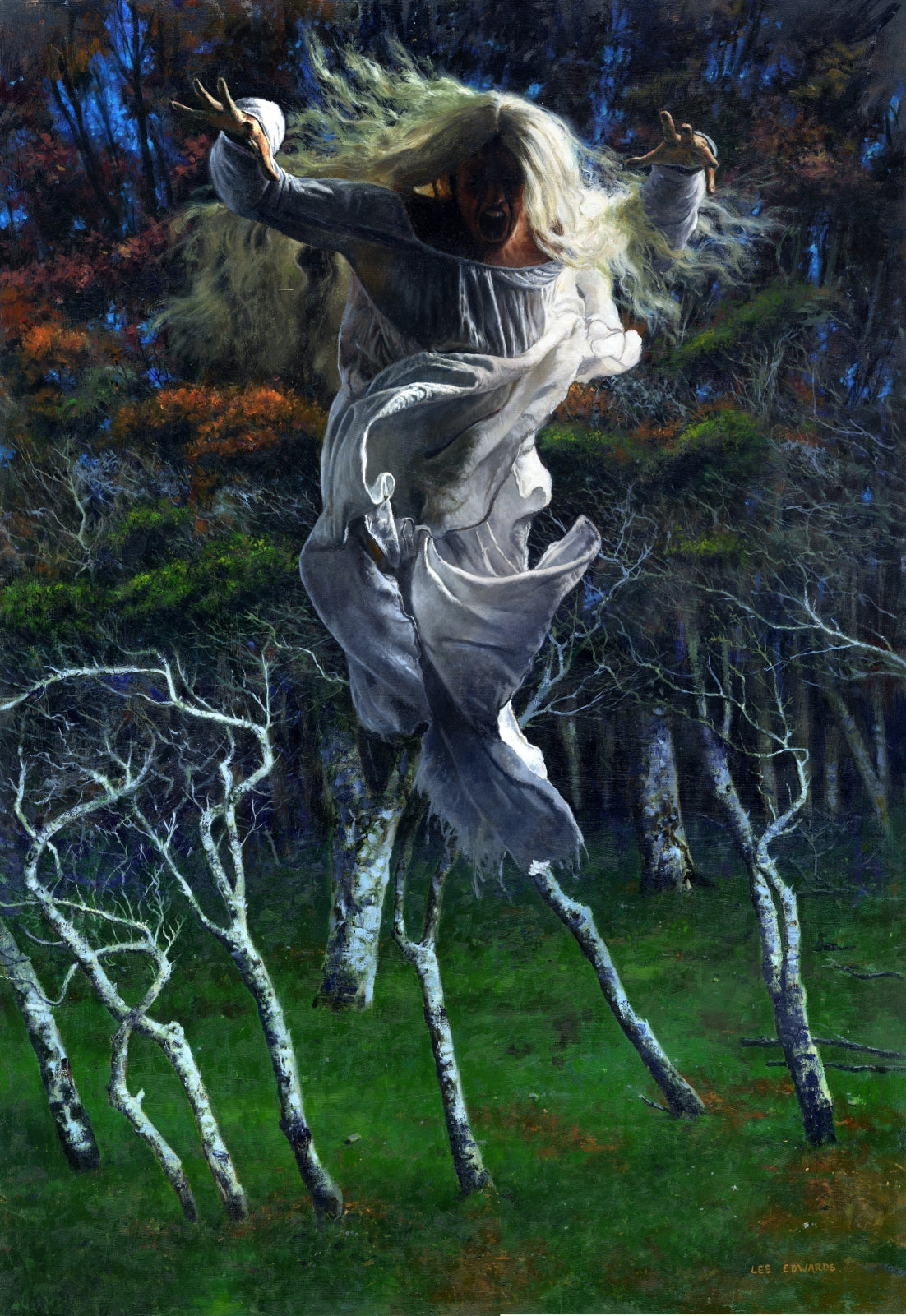I spotted these trees on a walk on the South Downs and thought they might be suitable for a painting one day. It turned out to be a more elaborate piece than I'd originally thought. The image of the woman is derived from Faestock on Adobe Stock.