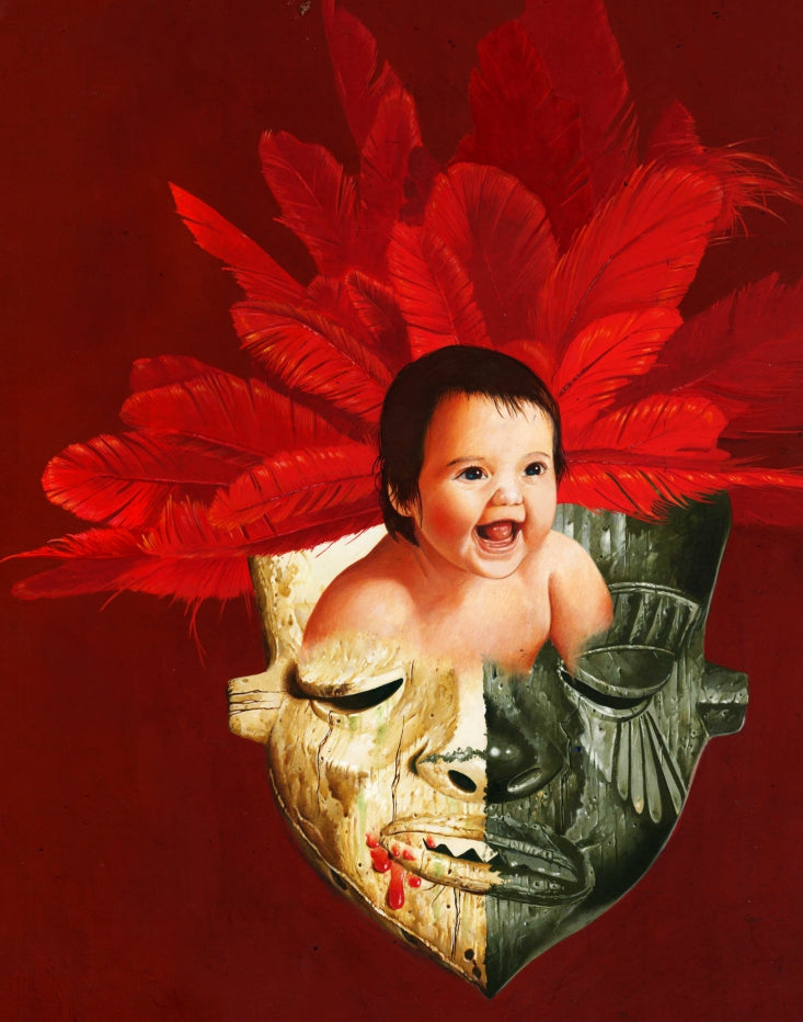 Commissioned by WH Allen for the cover of The Carry-Cot by Alexander Thynne ( the 7th Marquess of Bath ). It wasn't used so I changed the title to Black Magic Baby. It was used on a French paperback. It's a very early piece in Gouache, before I switched to oils, and it's surprisingly clourful.