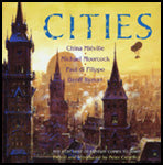 Bookcover for a collection of novellas edited by Peter Crowther with stories by China Mieville, Geoff Ryman, Paul di Fillipo and Michael Moorcock. Published by Gollancz.