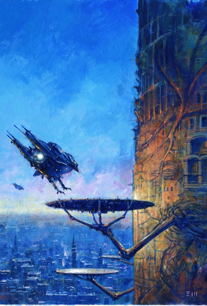 This is the cover for China Mieville's Embassytown, published by Laser Books. China's books are always rich with detail and it's not always easy to select one image from so many. In this case I was fascinated by the idea of the semi biological technology.