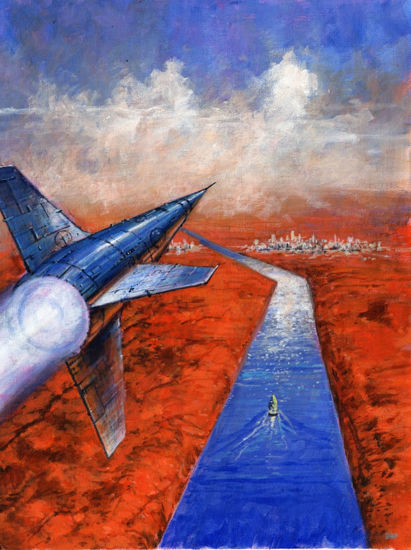 This was a preliminary sketch I did for the first version of The Martian Chronicles. I was trying out the look and colour in an attempt to get close to a vintage 1950s feel.