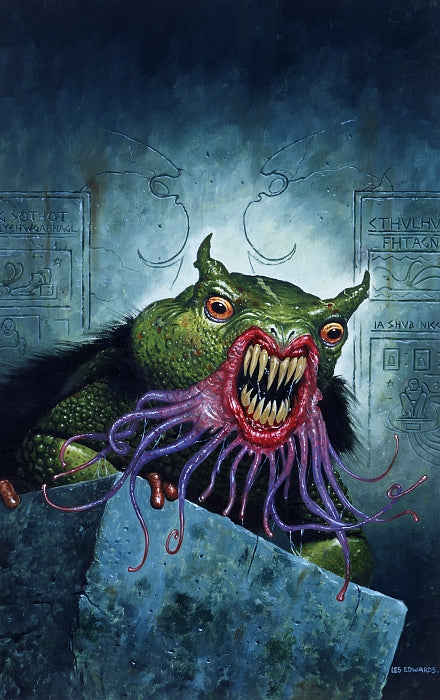 Cover for a collection of stories by Brian Lumley and published by Hodder. Stories by Brian Lumley in Lovecraftian mode hence the Mythos references in the background. See Prelims Gallery for sketch.