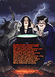 Poster design for Scholastic Books of a scene from Macbeth. This was for a poster to introduce children to the delights of Shakespeare. A part of the witches'chant, "double double toil and trouble" etc. was to appear on the cauldron. The publishers found that they had to take great care as parts of the speech are, shall we say, not politically correct. That Shakespeare guy! Also used on the cover of Rotten Relations, a collection of stories published by DAW Books. 15 tales of family skeletons, edited by Denise Little. It was our Christmas card a few years ago and was used on a German bookcover. Also used on the cover of Pentacle magazine.